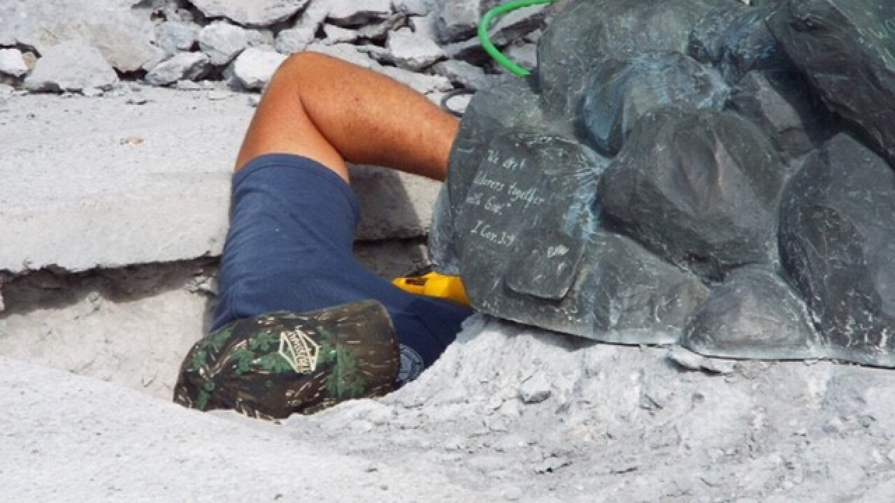 Los equipos completaron el trabajo de remoción de la estatua la madrugada del martes, que se había ubicado fuera del Edificio de Recursos Cristianos Lifeway.